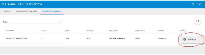 3.2) Após atualizar, localizar o MAC, ir nas ações e Autorizar.