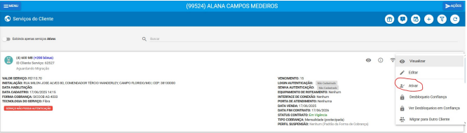 5) Clientes de instalação: ativar antes de todo o processo anterior (entrar no plano e clicar em Ativar), depois provisionar.