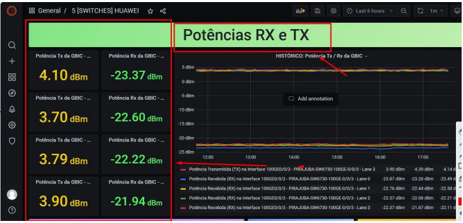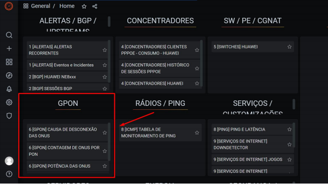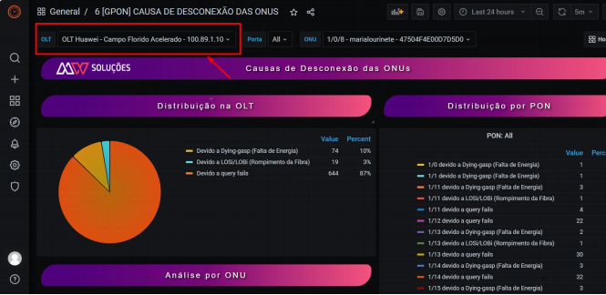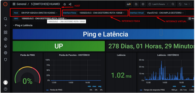 AO COLETAR AS INFORMAÇÕES DE QUAL INTERFACE E HOST PODE FAZER TODAS AS ANÁLISES NO GRAFANA. ROMPIMENTOS EM NOSSA REDE GPON-FTTX-OLT CHEGAM NO GRUPO.