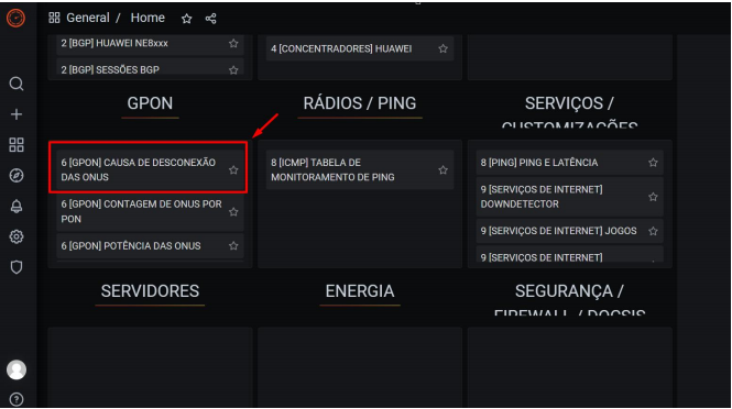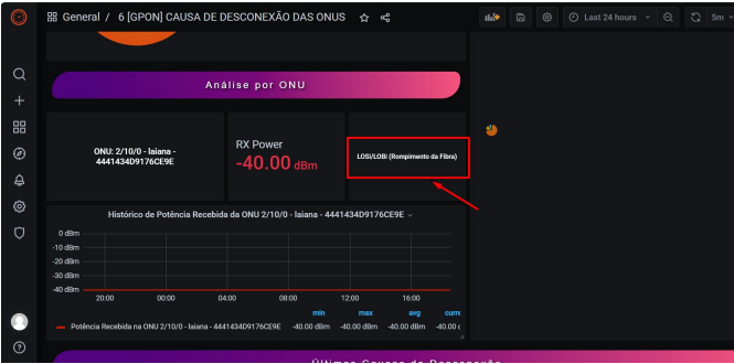 AO SABER QUAL PON E OLT/EQUIPAMENTO ONDE ACONTECEU O INCIDENTE VERIFIQUE NO GRAFANA QUAL O MOTIVO DO ALARME. NEM SEMPRE É ROMPIMENTO. NA MAIORIA DAS VEZES É ENERGIA. NO GRAFANA NA OPÇÃO GPON.